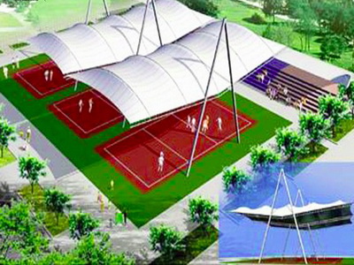 网球场的膜结构采用了先进的材料和技术,具有良好的透光性和耐候性,能够在不同的气候条件下保持稳定的性能。这种材料的应用,使得网球场即使在恶劣的天气中也能正常使用,为运动员提供了良好的比赛环境。